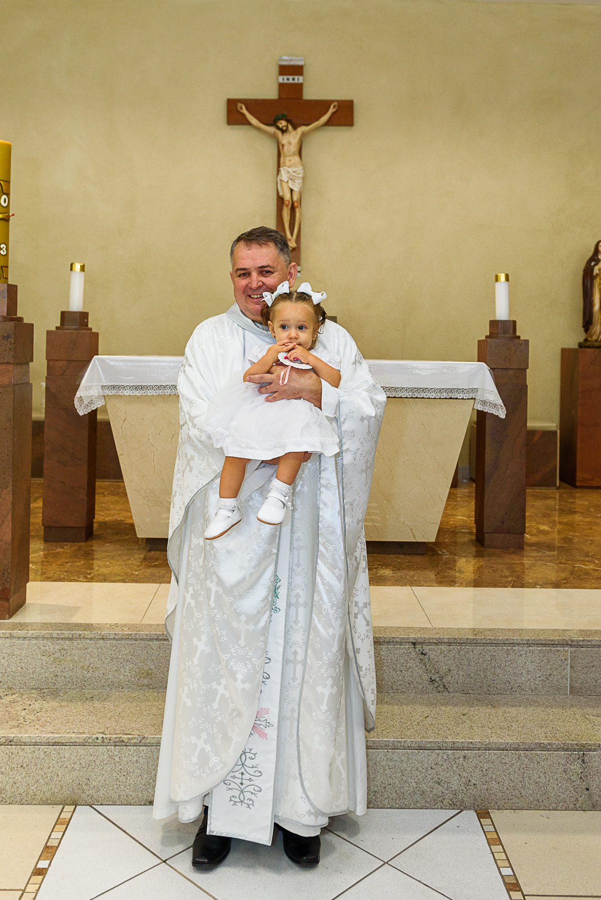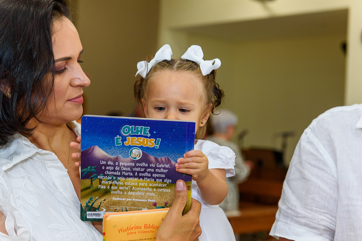 A pequena Laura estranhou um pouco no dia do seu batismo. Afinal, esse dia foi bem diferente do que estava acostumada. Mas tenho certeza que quando estiver maior, terá essa recordação do dia em que iniciou sua caminhada na fé.